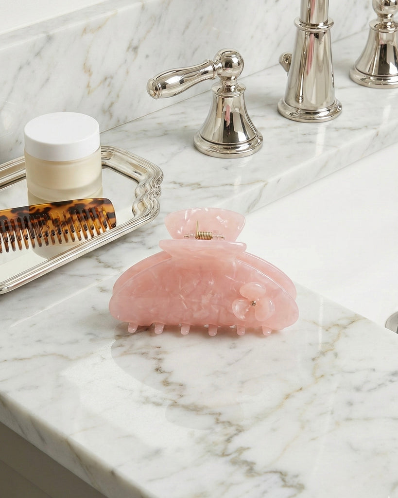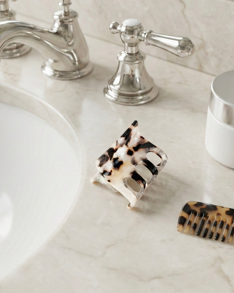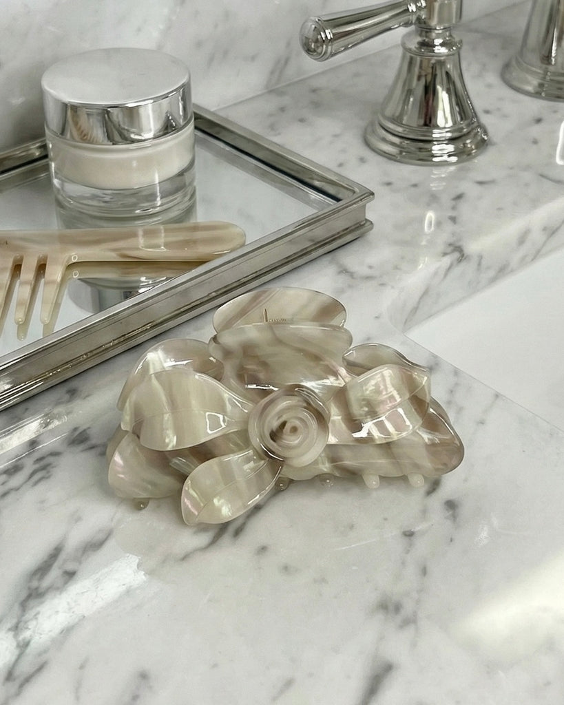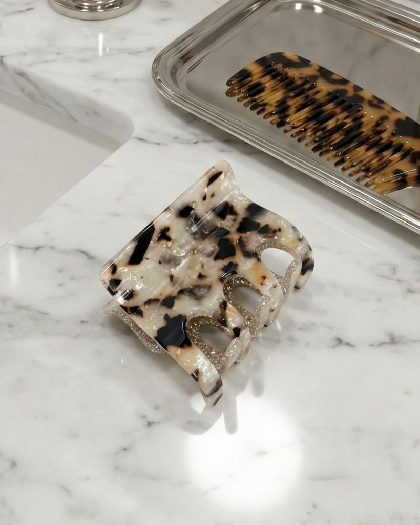 To keep your delicate accessories looking its best, we recommend following a few simple care instructions. Please avoid spraying any hair products, perfume or other chemicals directly onto the claw, as it can cause discoloration of the crystals and acetate. Despite its durability and high quality, cellulose acetate requires minimum care. For a better maintenance, also avoid exposing your clips to extreme heat or during long periods in the sun.