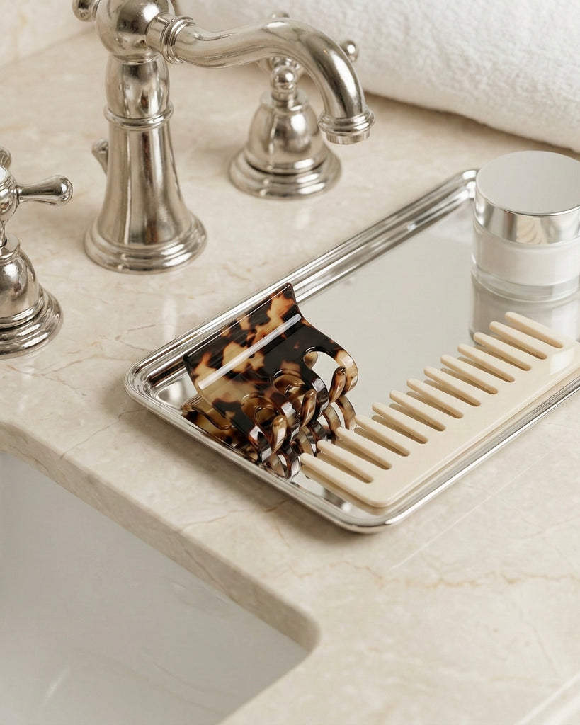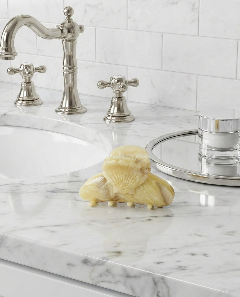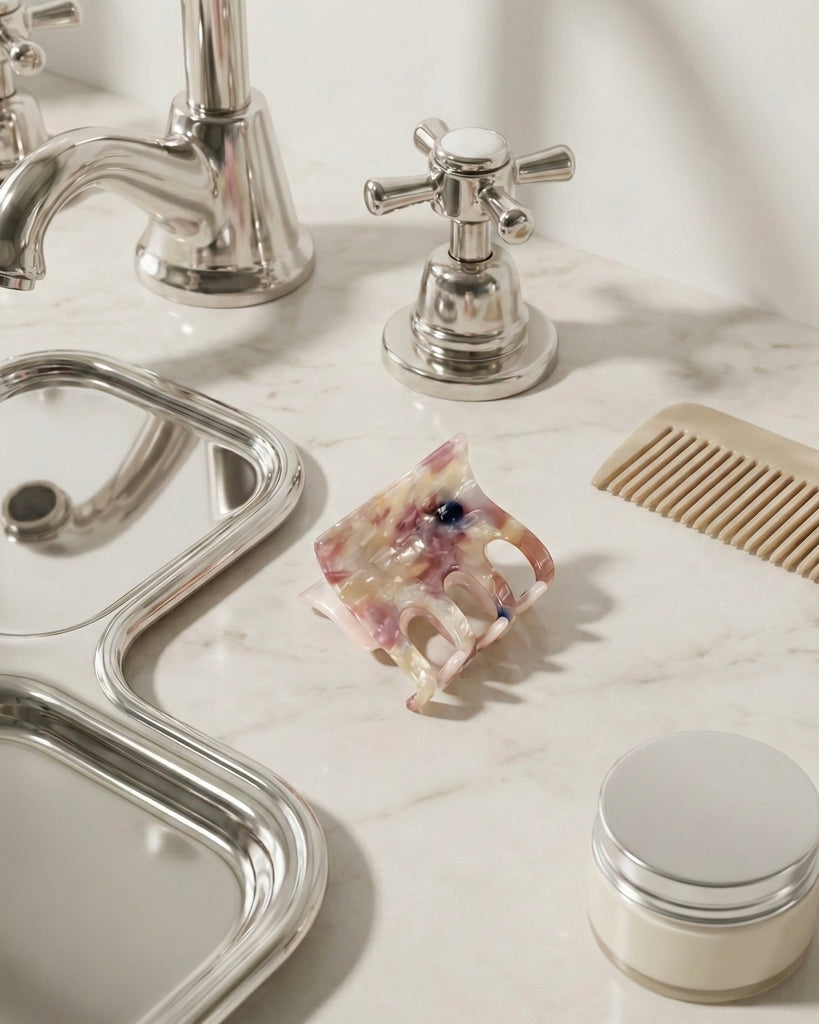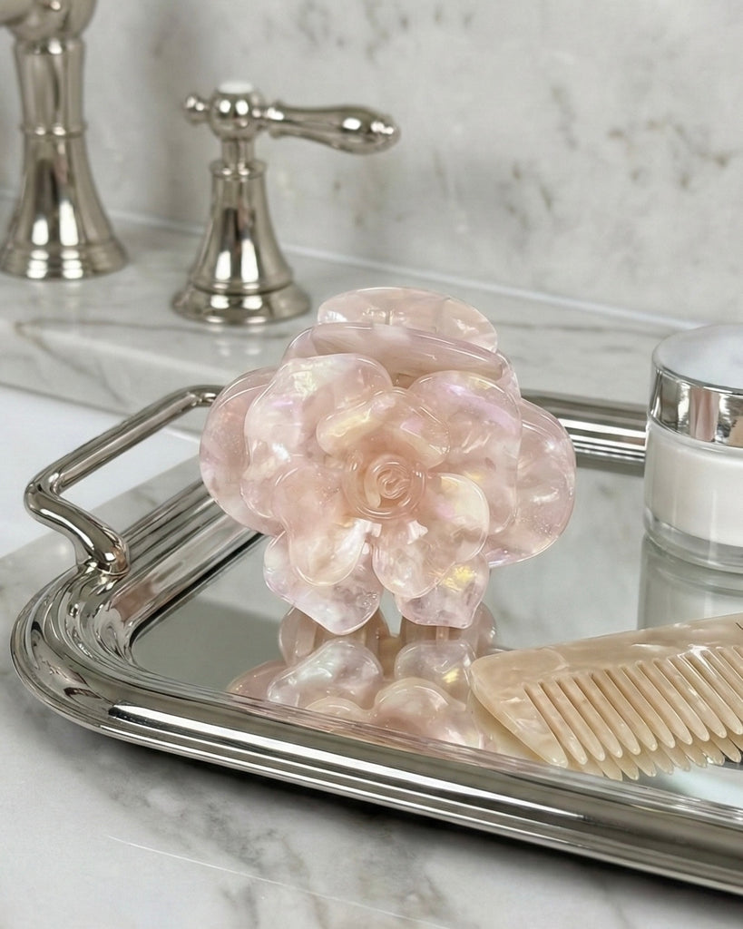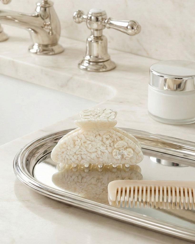 To keep your delicate accessories looking its best, we recommend following a few simple care instructions. Please avoid spraying any hair products, perfume or other chemicals directly onto the claw, as it can cause discoloration of the crystals and acetate. Despite its durability and high quality, cellulose acetate requires minimum care. For a better maintenance, also avoid exposing your clips to extreme heat or during long periods in the sun.