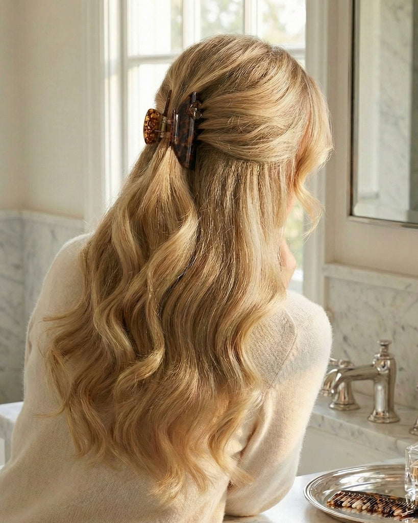 Dank ihrer starken Feder bietet die Klammer zuverlässigen Halt – egal ob feines, dickes oder langes Haar. Perfekt für schnelle Alltagsfrisuren, elegante Outfits oder warme Winterlooks.