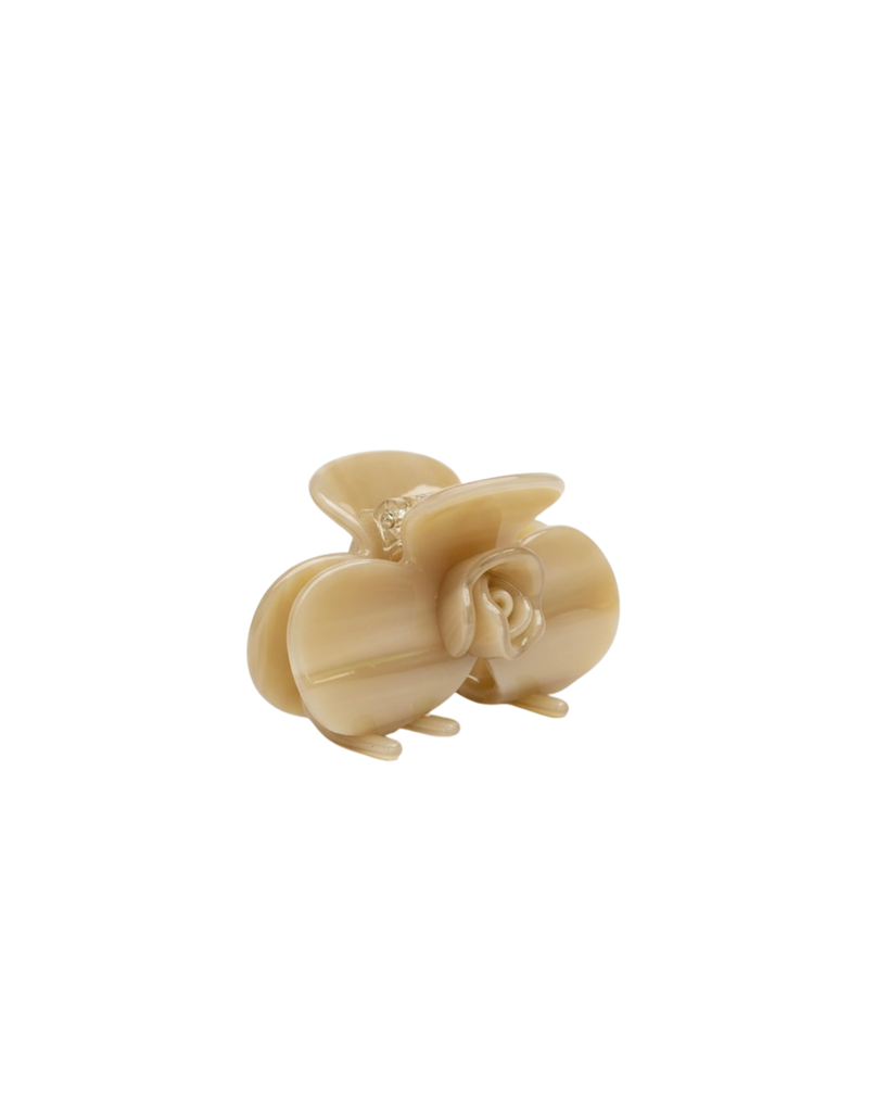 Elevate your hairstyle with the Leonie Acetate Claw Clip in Caramel Glaze, featuring a delicate floral application for a touch of elegance. Crafted from high-quality acetate, this luxurious hair accessory offers a strong yet gentle grip, making it perfect for securing all hair types without damage. The soft, translucent nude finish paired with a subtle floral embellishment creates a timeless and sophisticated look. The strong and secure grip holds thick, fine and textured hair in place all day. The clean, timeless design makes it a versatile accessory, perfect for casual, work and special occasions. Shop now and embrace the beauty of minimalist elegance and modern romance.